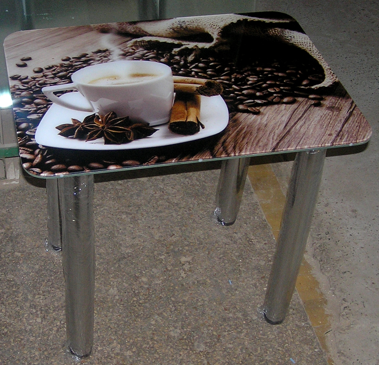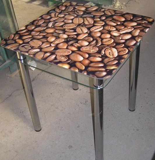 Стол стеклянный с фотопечатью рис. 4 кофе