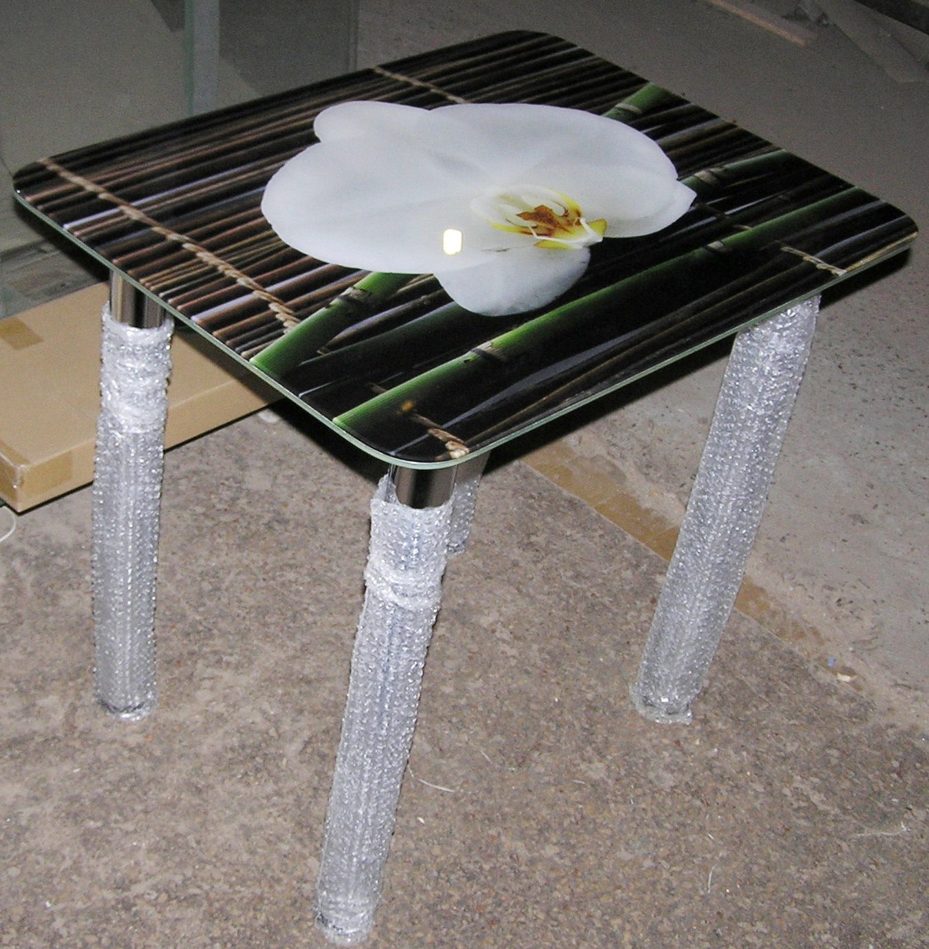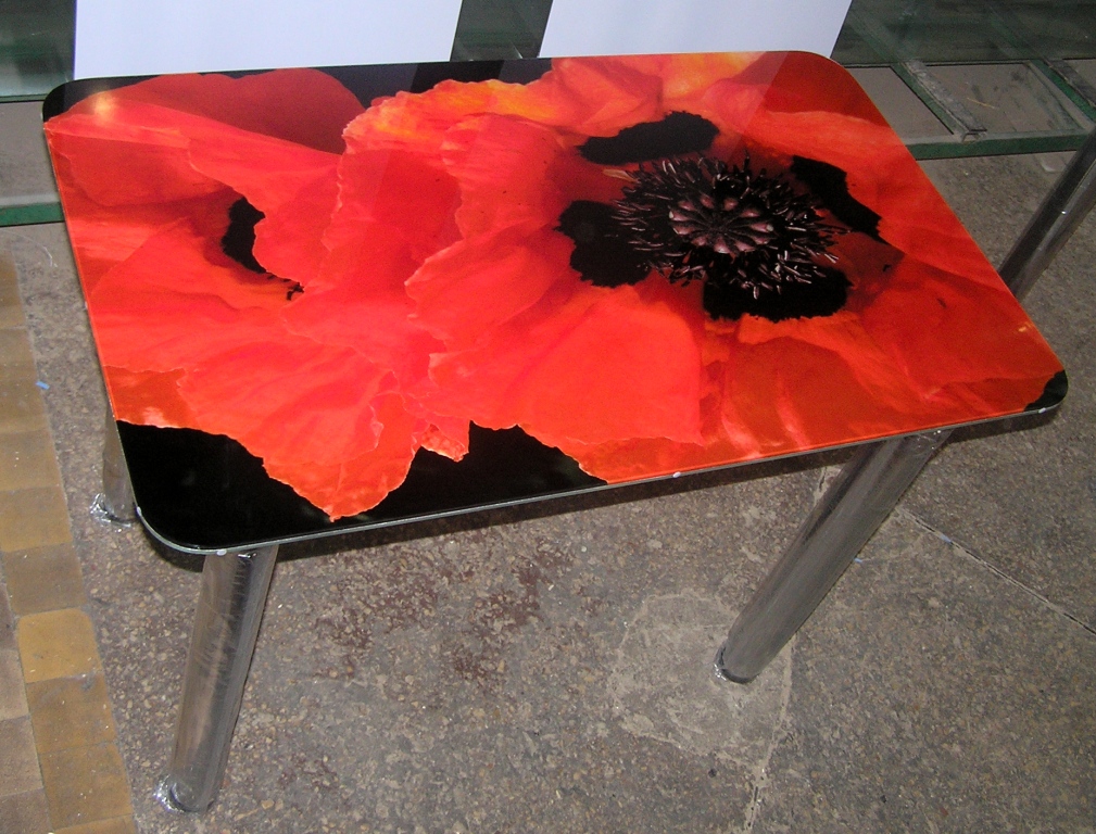 Стол стеклянный с фотопечатью рис. shutterstock_76060093