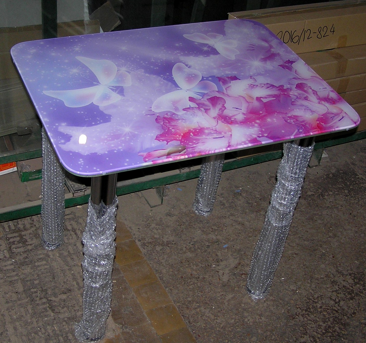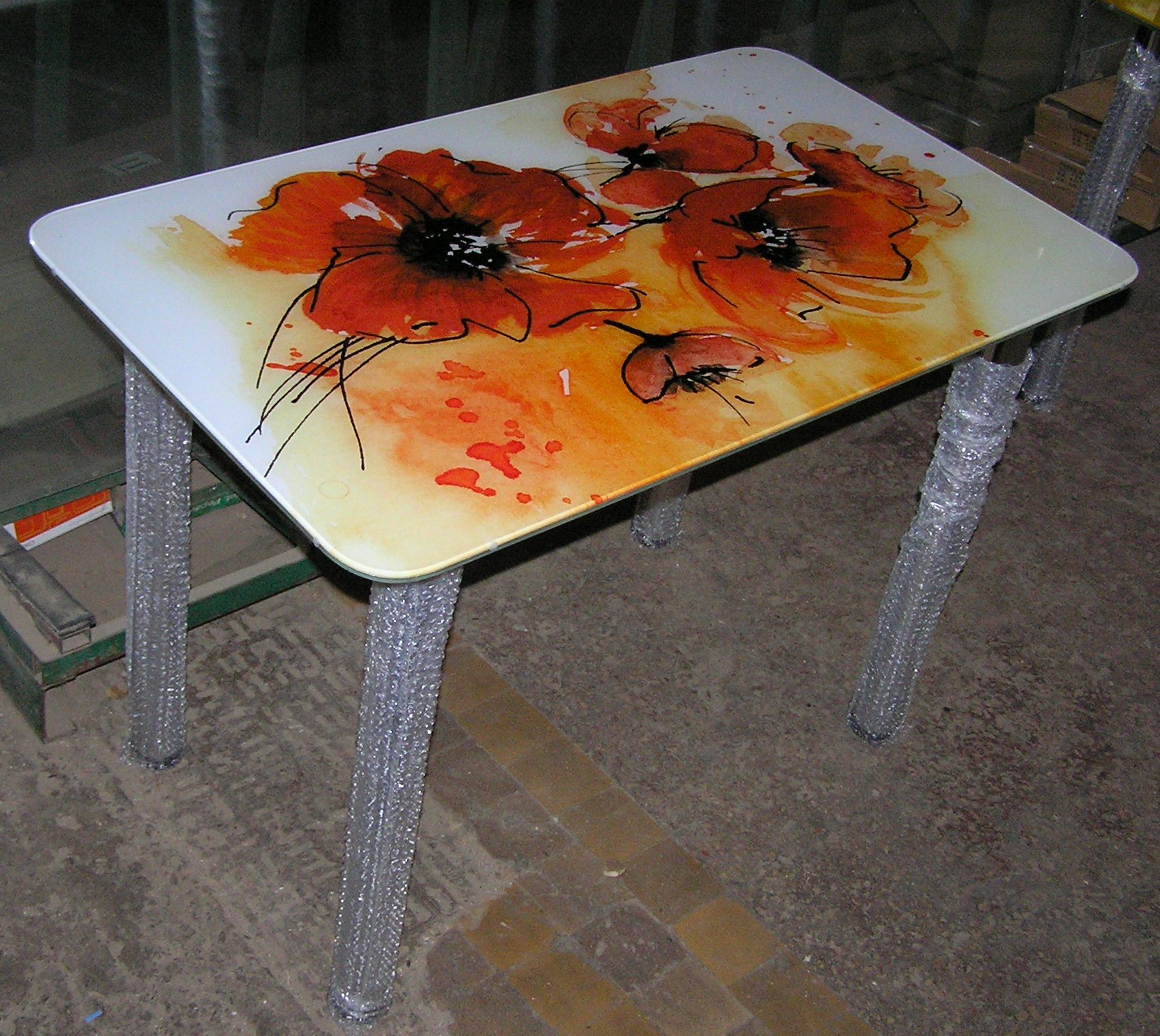 Стол стеклянный с фотопечатью рис. shutterstock_2380551